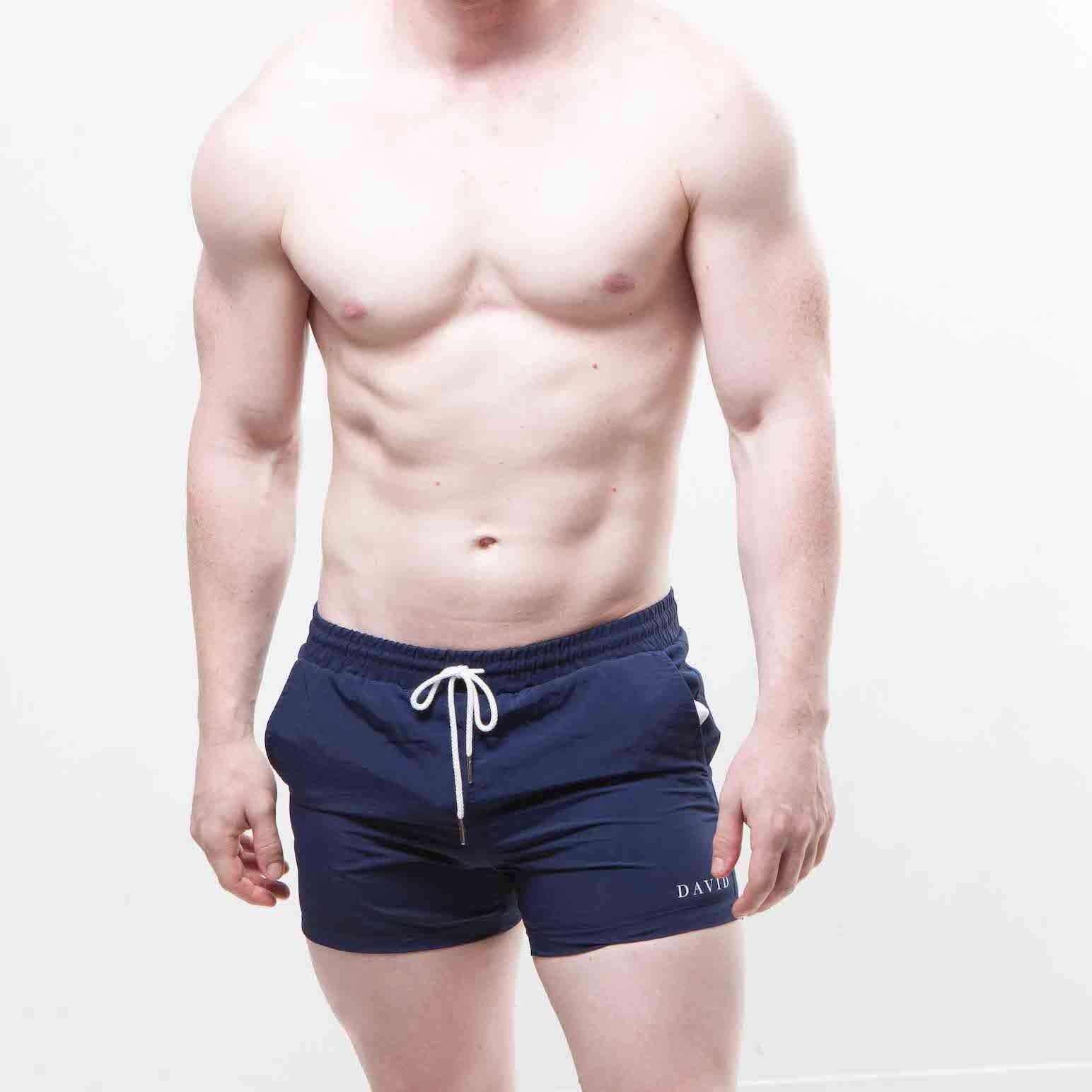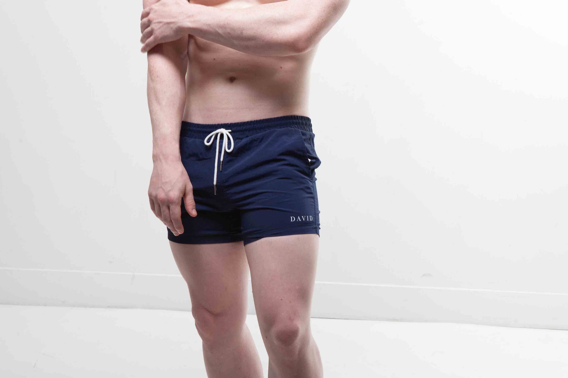 Perfect length Navy Trunks that dry fast. Fabric produced locally in Los Angeles, CA.